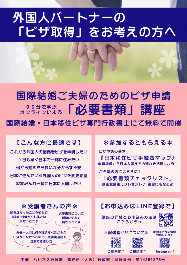 無料オンライン講座ー国際結婚・配偶者ビザ申請「必要書類」講座
