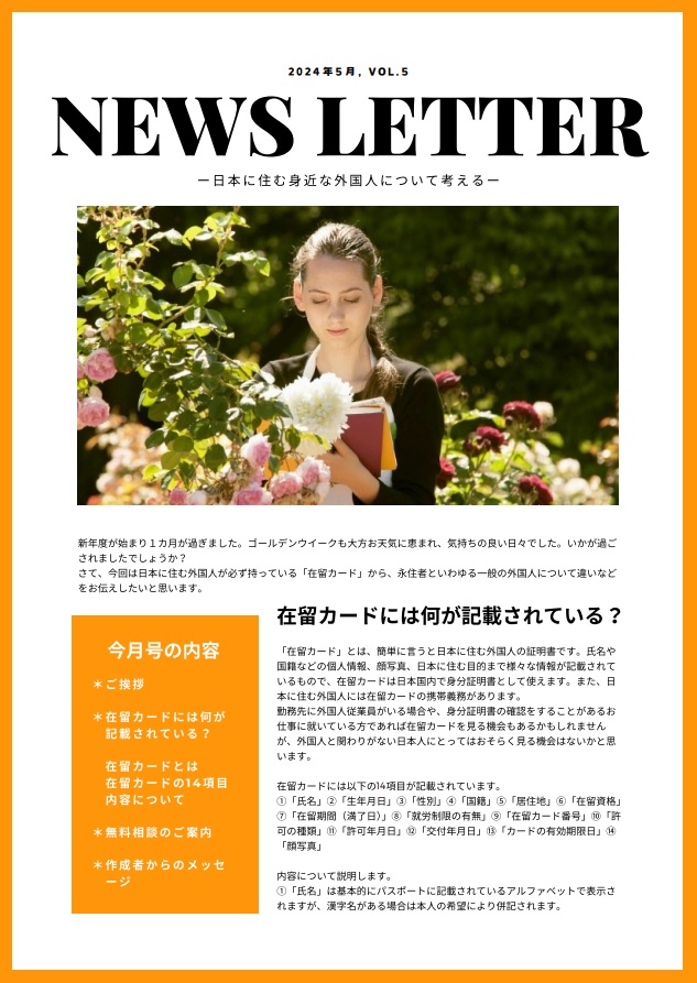 ー日本に住む身近な外国人について考える~News Letter5ー