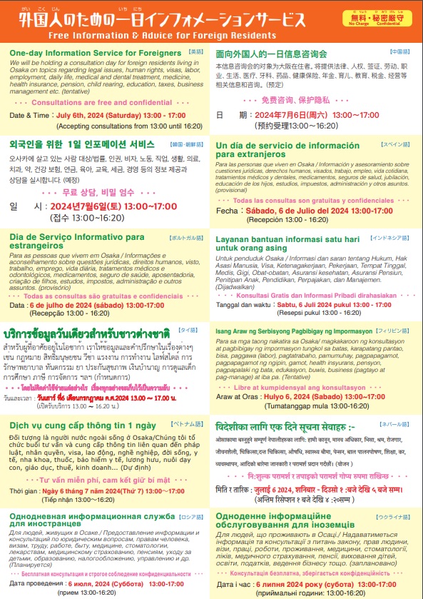 2024年7月6日(土)に『外国人のための1日インフォメーションサービス』が開催されます。