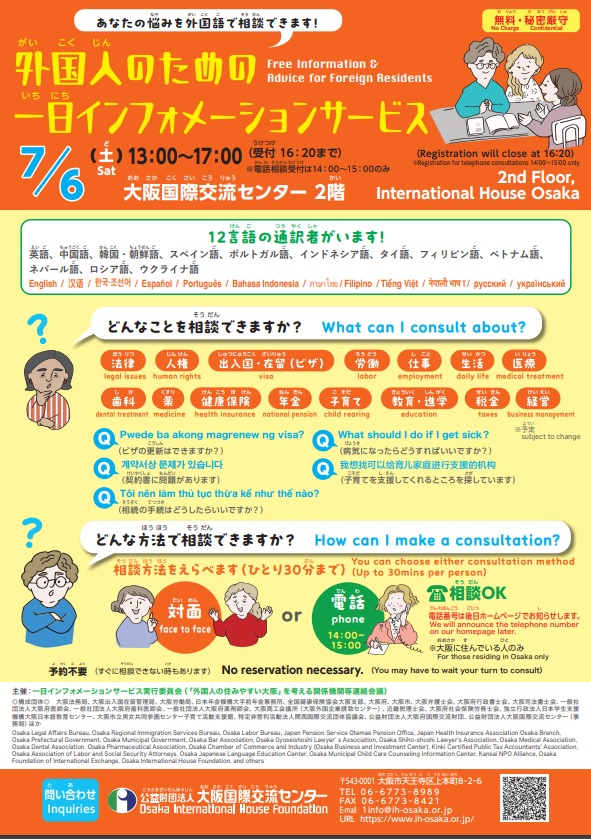 大阪市:外国人のための1日インフォメーションサービス~出入国在留管理局のお知らせ